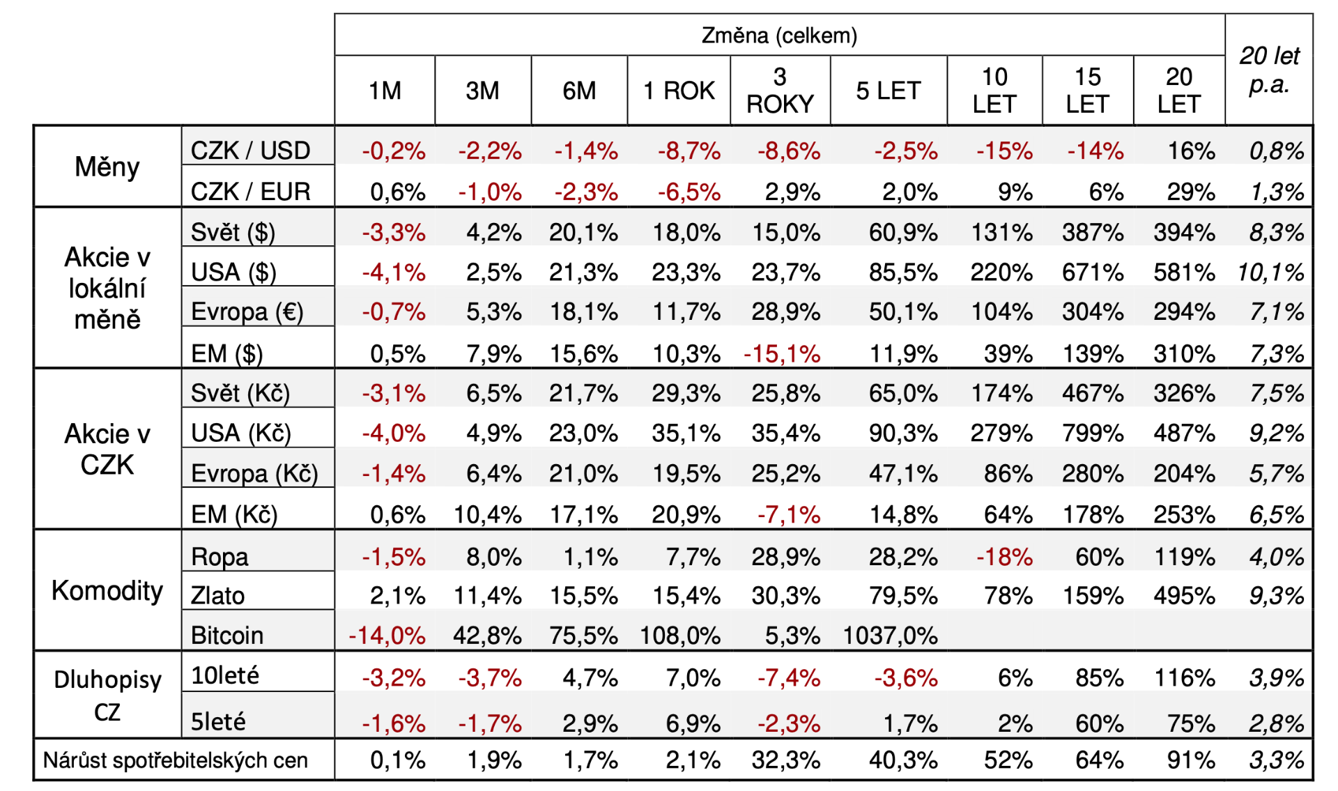 Jak dopadly jednotlivá aktiva?